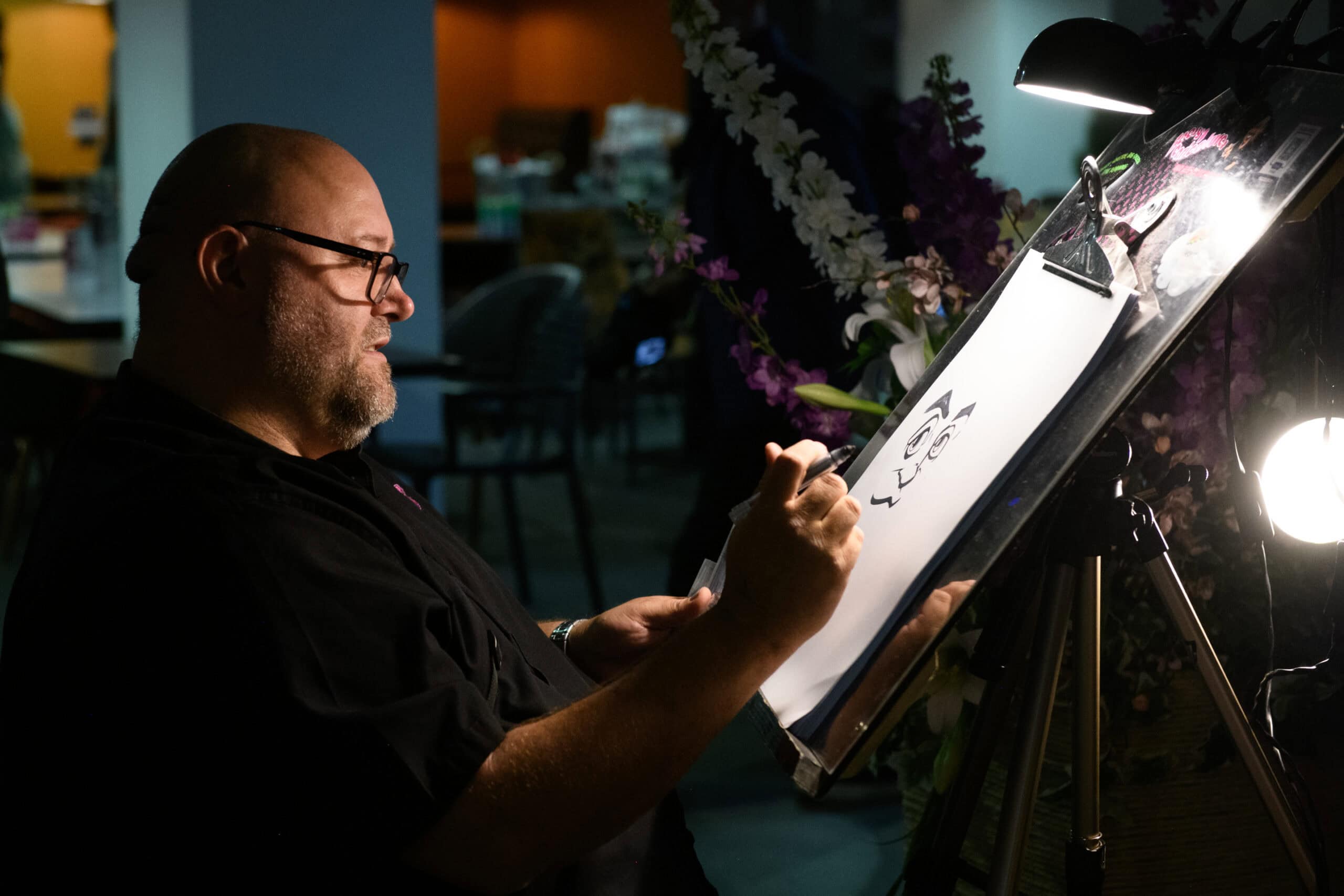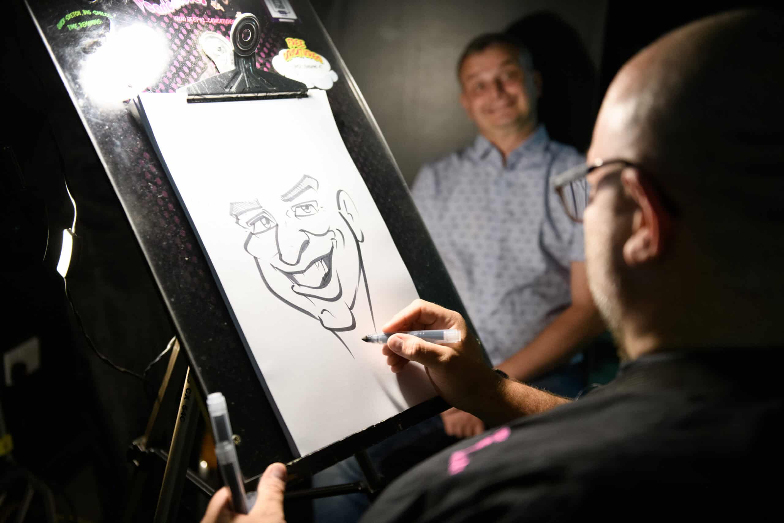 Corporate events can feel a bit formal until something comes along that gets people talking. That is where live caricatures work well. I set up in a corner, start drawing and within a few minutes people are gathering round, laughing at the reactions and easing into the night. It gives guests something to chat about that is not work, which helps the whole event feel more relaxed.